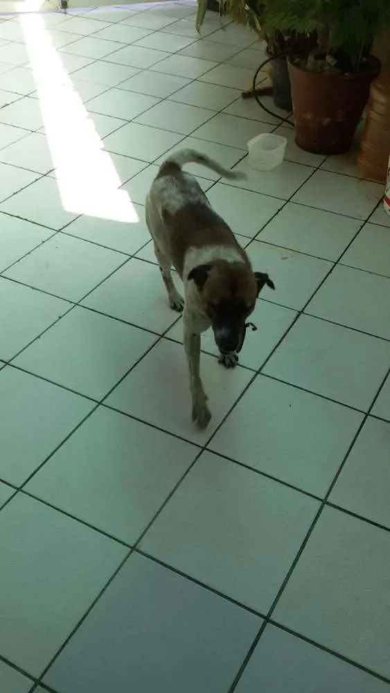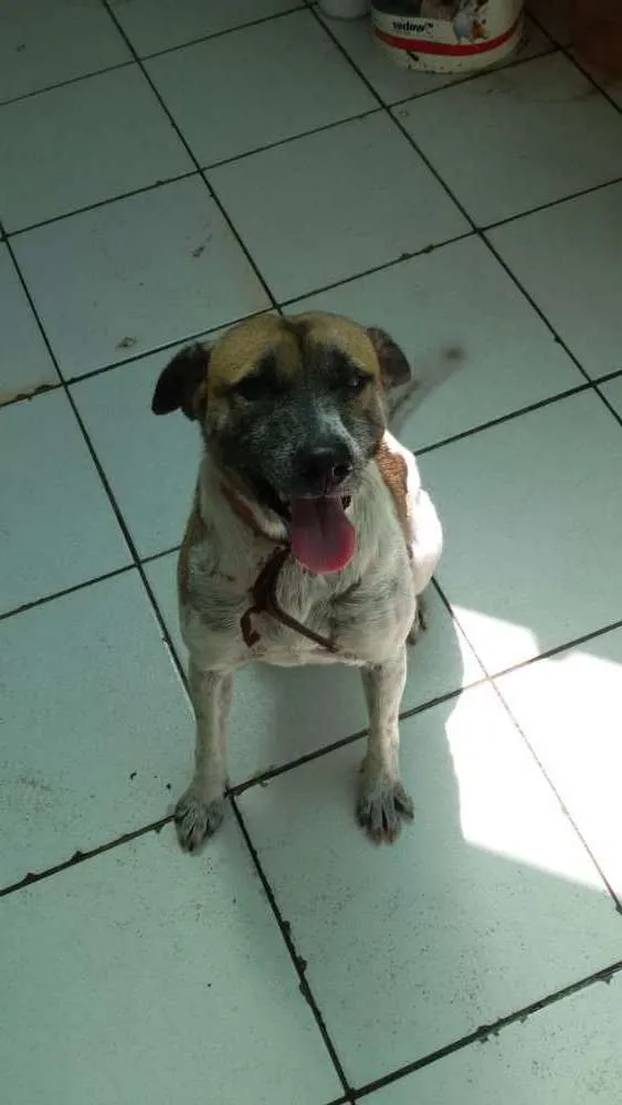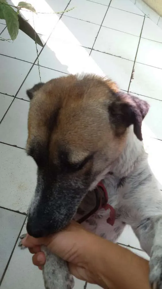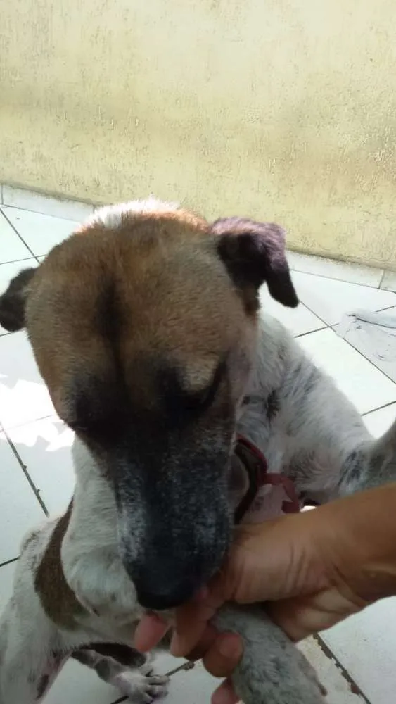 Foi abandonado é muito docil e brincalhão e está em um lar temporário e em breve não terá abrigo quem se interessar por amiguinho e puder fazer algo pra ajuda-lo, entre em contato com este número:+55 13 98841-2151 falar com Ana ou 13 99198-8670 falar com Thais.