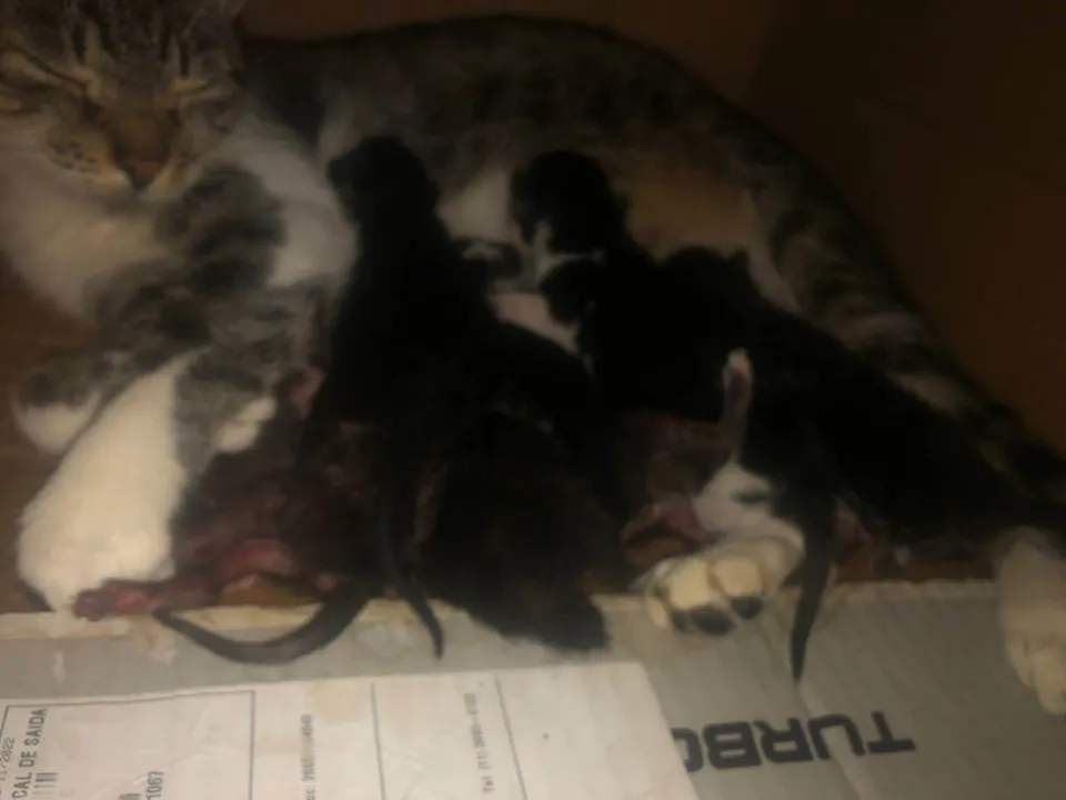 Ela apareceu aqui em casa a uns meses atrás qdo marquei pra castra não podia pois ela estava amamentando, o filhote estava com um mês, só que neste período ela engravidou e ontem dia 02/01/2023 ela deu crias são 9 filhotes, e já tenho 2 gatas mais o filhote único tá outra cria q ela deu assim q apareceu em casa, uma das minhas gatas ficou muito arrisca desde q ela chegou só q agora ela está avançando na Nammy e nos filhotes, por isso estou pedindo com urgência um lar pra eles.Pois a minha gata não está comendo e está agressiva e estressada.E infelizmente não tenho como ficar com ela e os filhotes.