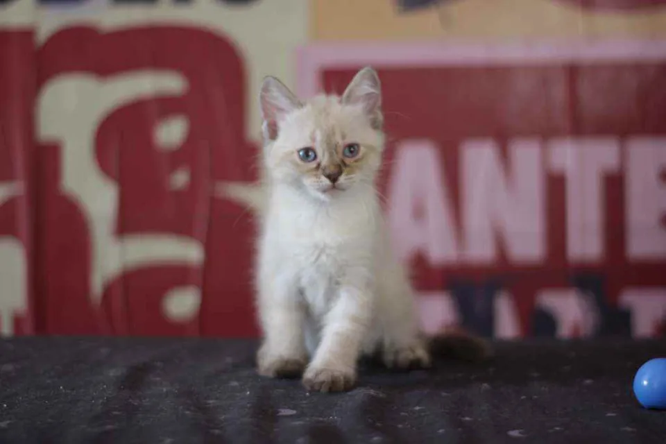 Estão com 56 dias, já usam caixa de areia, comem ração seca, usam a caixa de areia e estão vermifugados.