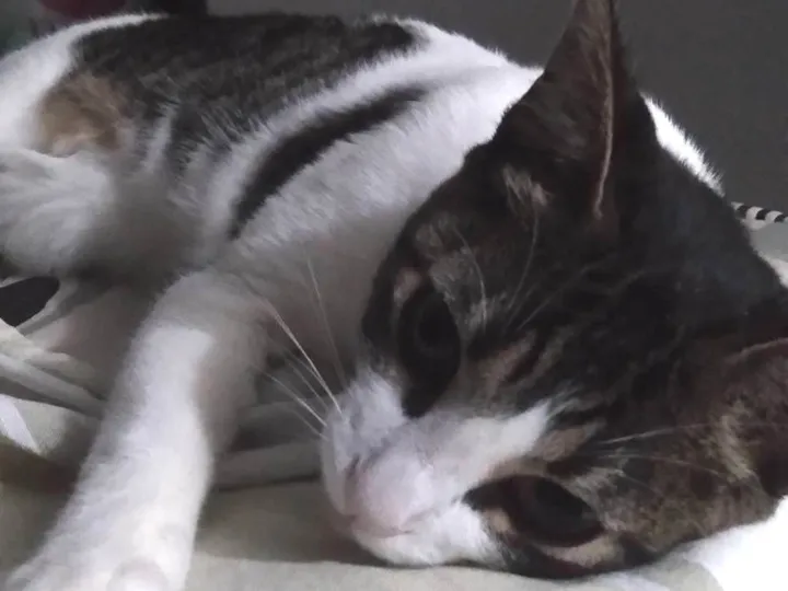 Ela saiu para tomar sol e não voltou, na região do Canto do Forte próximo a pastelaria do Akira Jr. Nunca saiu na rua, é bem medrosa. Vai completar 6 meses, também atende por Pitica, Lilica, Tití e principalmente por Filha