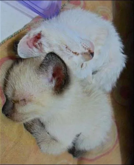 Achei esses gatinhos na rua durante uma chuva muito intensa , gostaria da ajuda para adoção pois estou gestante e não tenho condições médicas para cuidar deles. Acredito que são duas femeas , muito bebes mas carinhosas ja.