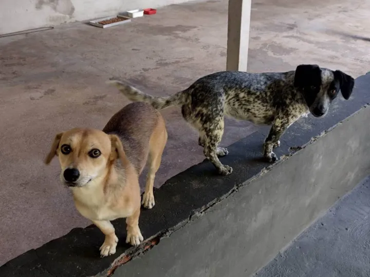 A Estrela e a Lua foram pegas filhotes de adoção, estão vacinadas, são irmãs, porém neste momento estou passando por dificuldades em casa e tá muito difícil manter alimentação para elas, e pra piorar a minha sogra cedeu a casa pra eu morar e ainda deixou um cachorro aqui doente de grande porte pra cuidar e não ajuda com a ração para ele, então preciso doar elas , não vou abandonar elas na rua não tenho coração pra isso, então estou aqui pedindo que ajudem eu achar um novo lar pra elas. A marrom é a Estrela eu chamo ela de minha lobinha, a preto com branco é a Lua que eu chamo de minha mimosa