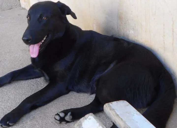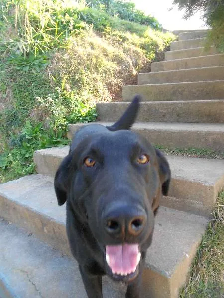 Na verdade ele é uma mistura de Pastor Alemão com vira-lata, mas estranhamente o cachorro parece mais da raça labrador!