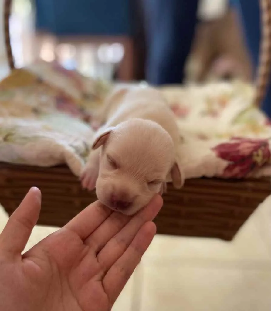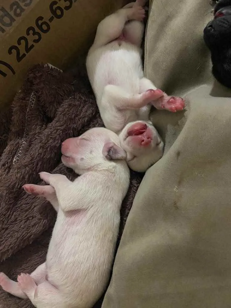 Ela teve dois lares que não deram certo, então ficamos com ela, no entanto, após 20 dias a barriga começou a crescer, ao fazer uma ultrassom descobrimos que ela estava grávida, e o que a princípio mostrava ser 7 filhotes, depois no raio x apontou 12, como era uma gravidez de risco, optei por uma cesária (junto com castração), na verdade eram 14 filhotes, e nasceram com vida apenas 13.