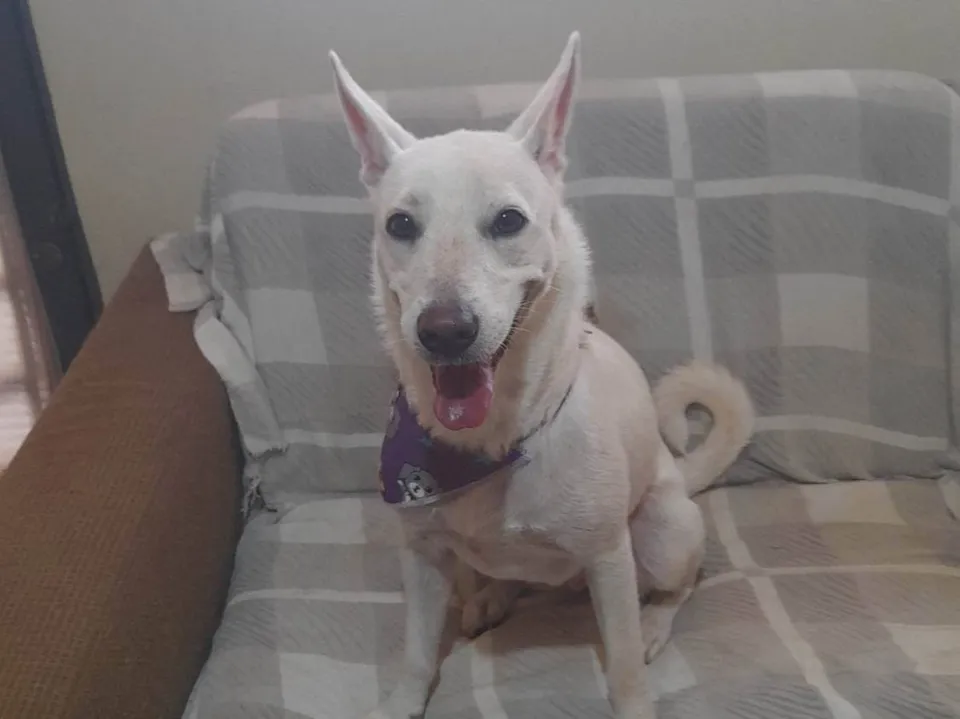 Alegria era a companhia de uma idosa que faleceu recentemente e agora terá de sair da casa alugada para desocupá-la. Pesa 20 quilos e nasceu em Abril de 2024. Alegre, ativa, dócil e carinhosa.