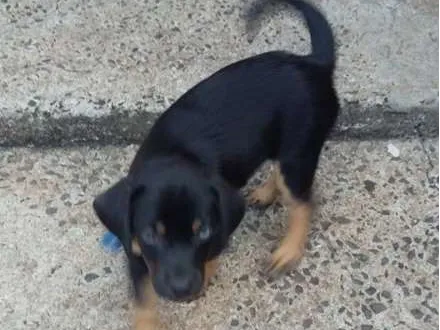 Encontrei este Cachorrinho na rua Javari próximo ao Savegnago, quase foi atropelado. Ele deve ter em torno de 1 a 2 meses, tem olhos de cor diferente, um é castanho escuro e o outro é branco. Ele é muito bonito.