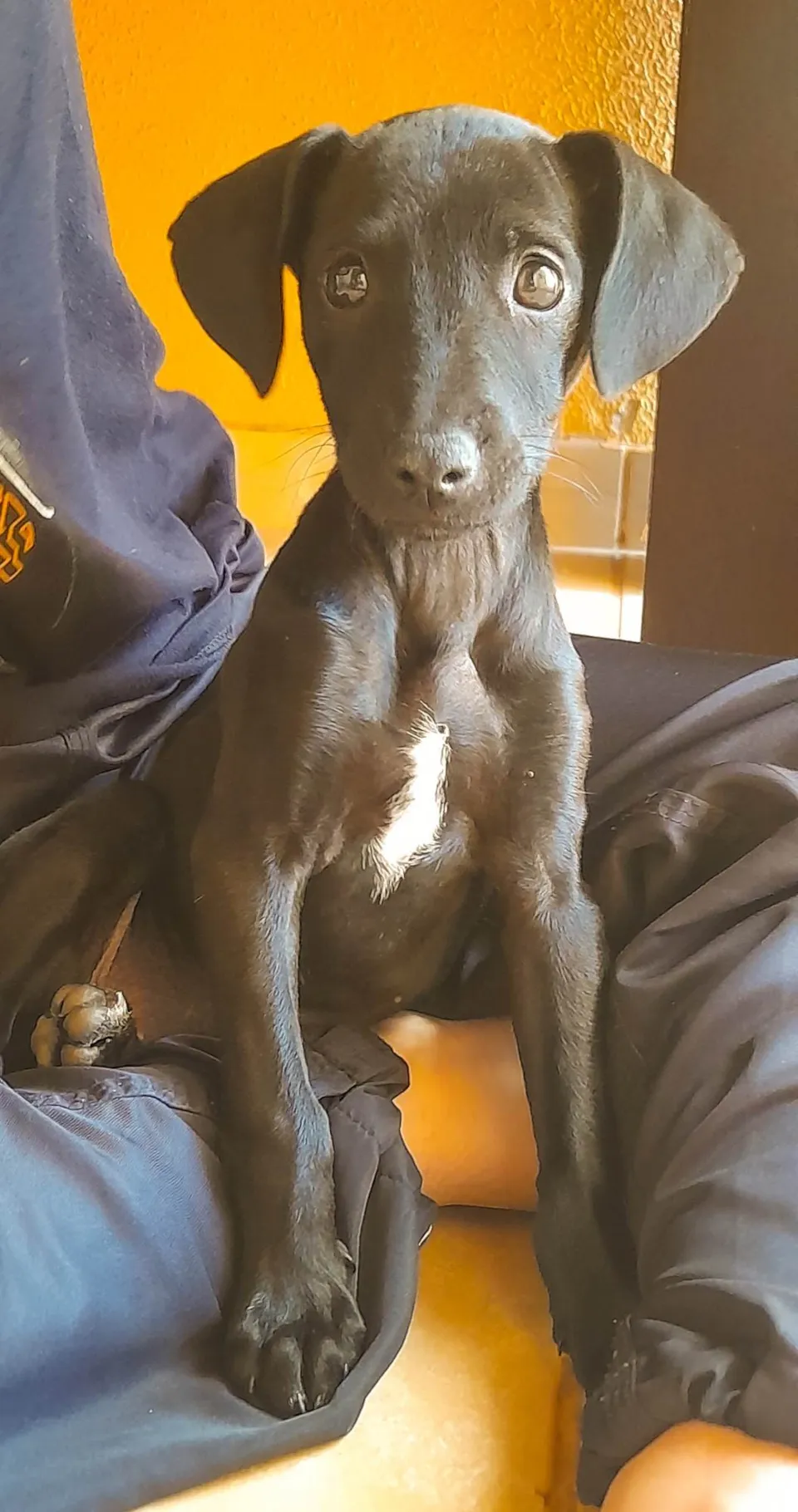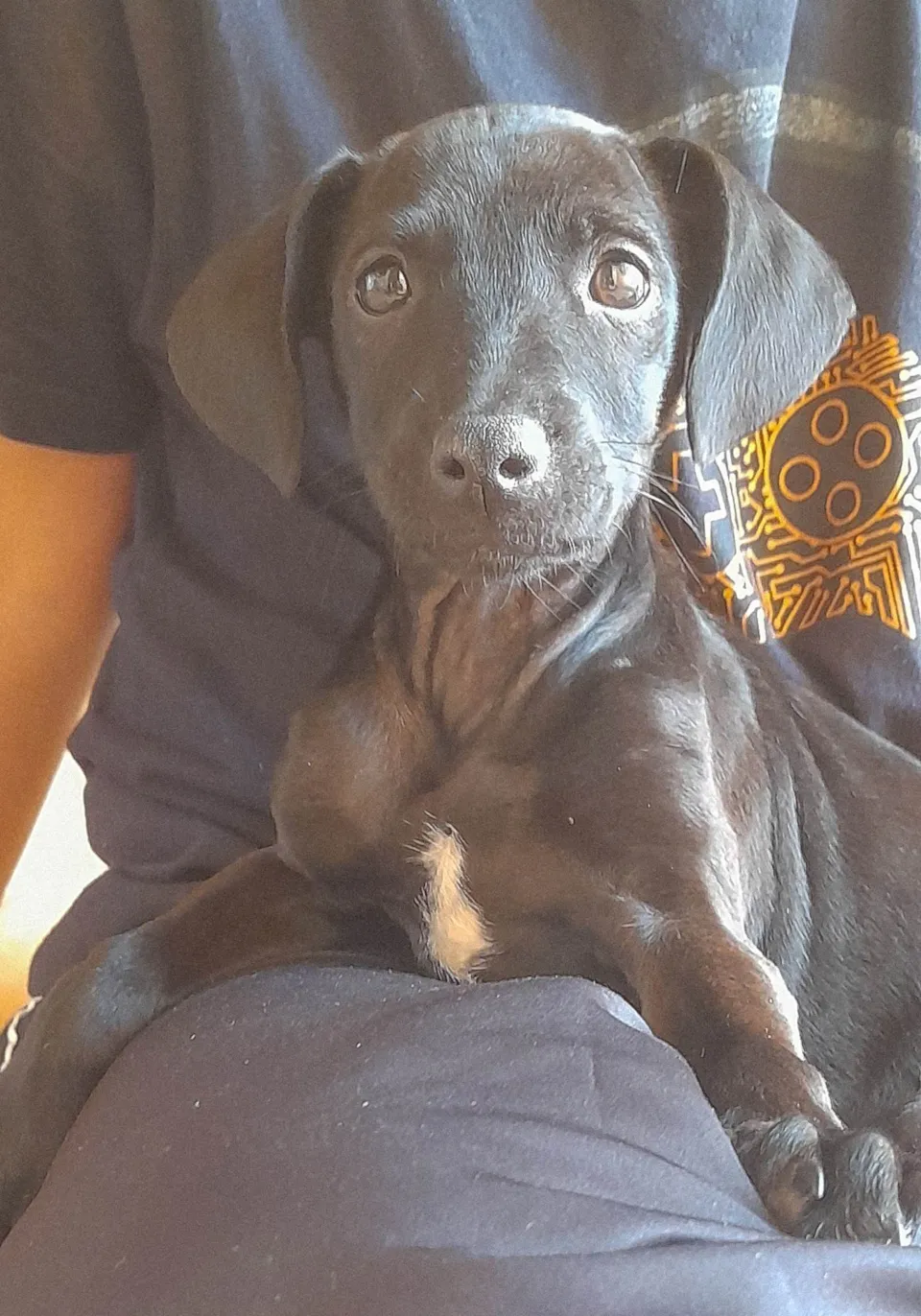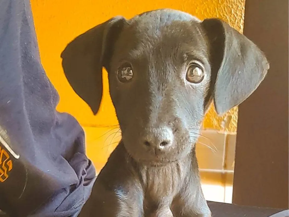Cachorrinha preta fêmea, aproximadamente 3 ou 4 meses, foi resgatada a pouco tempo, está se alimentando bem, sendo muito bem cuidada e está em busca de um lar permanente que possa acolhê-la com muito carinho. É muito amorosa e dócil.
