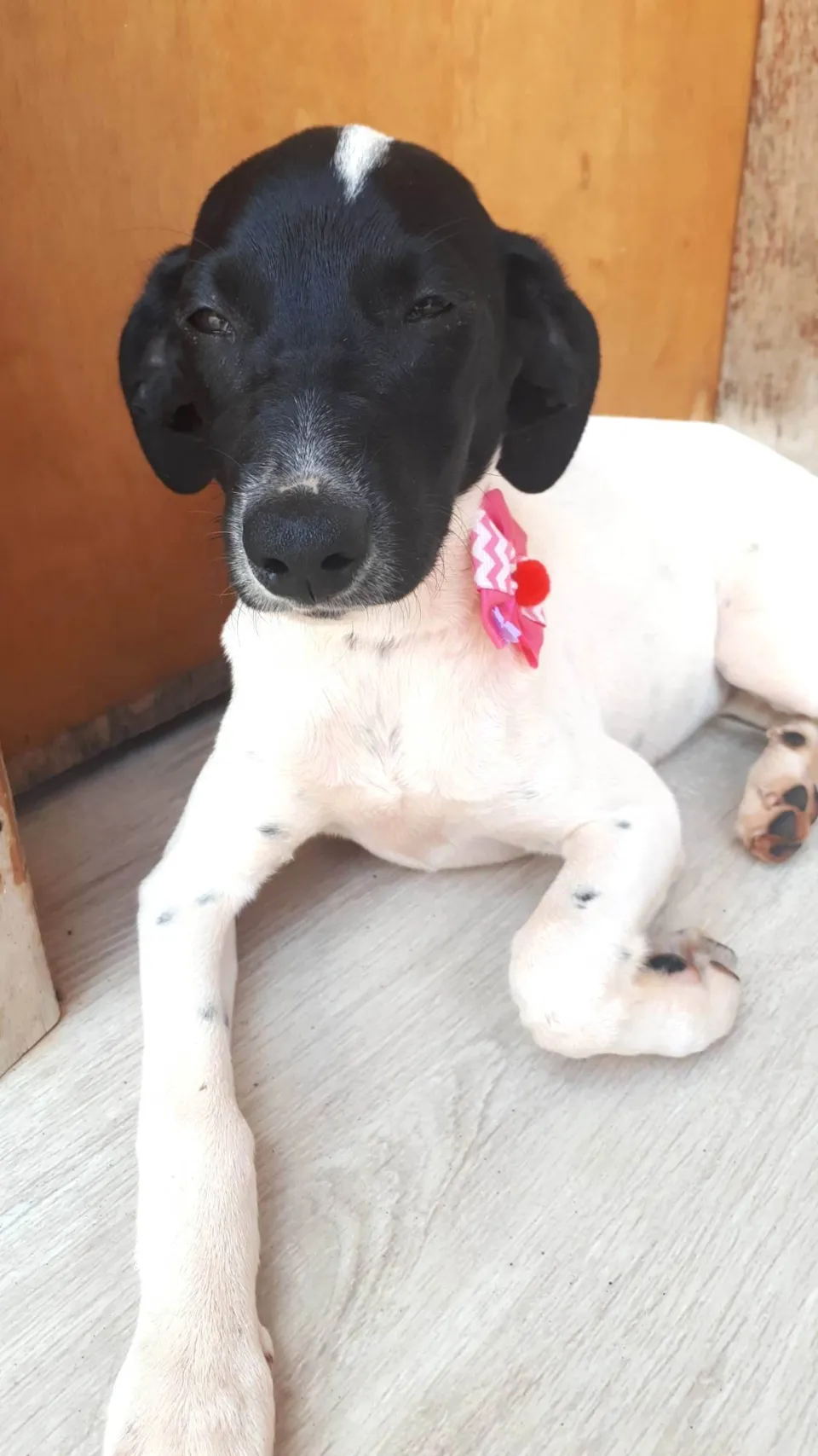 Encontramos a Maya na rua. Ela ainda é filhote e tem por volta de 6 meses. Ela será castrada e vacinada. É muito dócil e boazinha. Gosta de brincar e sabe fazer as necessidades fora de casa.