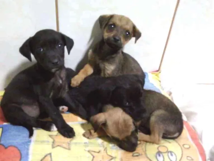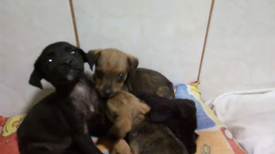 São 4 filhotinhos, 2 machinhos (os marronzinhos) e 2 fêmeas ( as pretinhas).