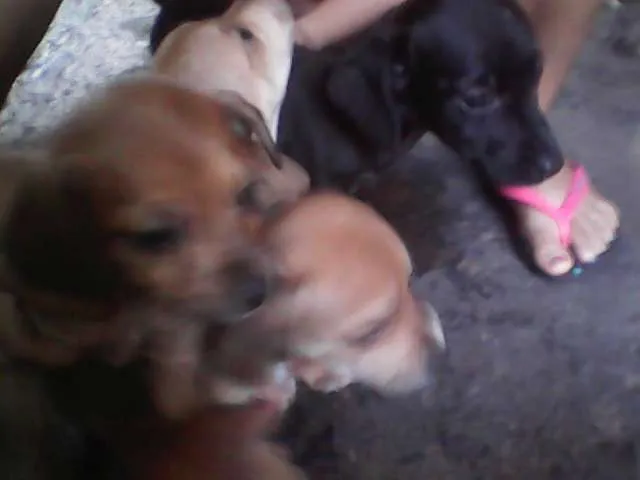 sao 4 filhotes... 3 sao da mae pincher com viralata e o pai basse e 1 filhote (preto) encontrei abandonado na rua... ja estao vermifugados, sao 2 machos e 2 femeas porte pequeno.