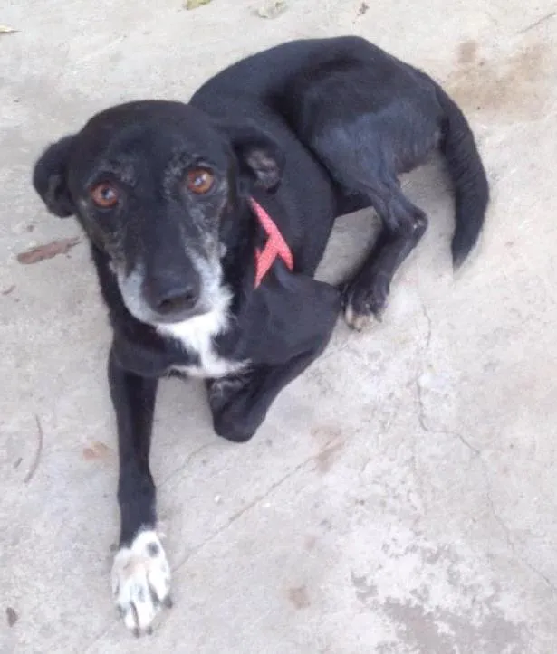 Uma noite encontramos essa cachorra, estava muito magra e parecia doente. Não temos onde abrigar e procuro o dono dela ou alguém que queira ficar com ela. Ela é muito dócil e brincalhona. Parece ser nova.