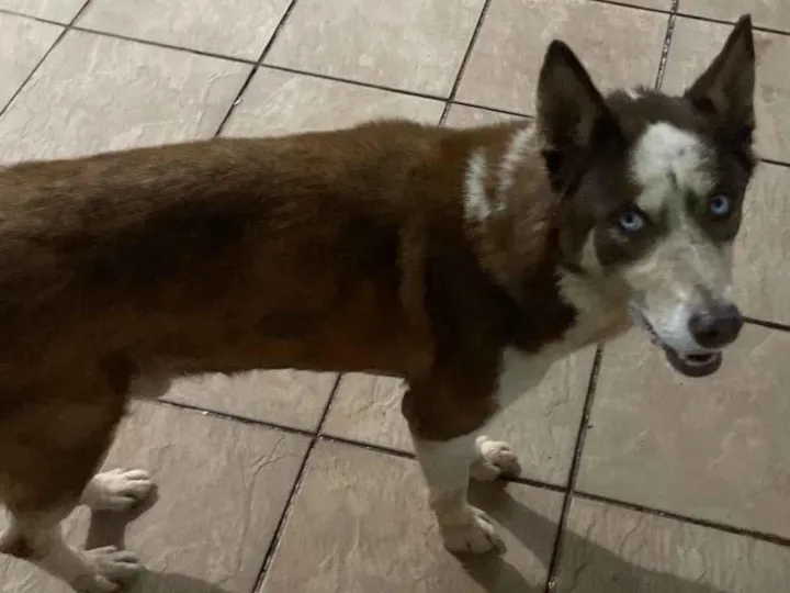 Encontramos um lindo cão macho da raça Husky Siberiano, com uma pelagem marrom única e uma idade estimada entre 7 e 11 meses. Ele é de porte grande, mas não se engane pelo tamanho - ele tem um temperamento extremamente calmo e é muito sociável. Esse amigão adora a companhia de pessoas e se dá bem com desconhecidos, tornando-o um ótimo companheiro para famílias ou indivíduos que tenham uma casa com quintal, onde ele possa gastar sua energia e brincar. Ele está atualmente sob nossos cuidados e estamos à procura do seu dono ou de alguém que esteja disposto a adotá-lo e dar todo o amor e carinho que ele merece. Se você reconhecer este Husky ou estiver interessado em adotá-lo, por favor entre em contato conosco. Ele está ansioso para encontrar um lar amoroso e permanente.