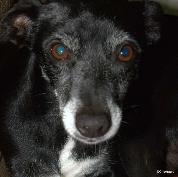 Tem pelagem esbranquiçada nas patas e focinho devido a idade, falta um dentinho da frente. É pequena, arisca e muito esperta! Na cabeça (acima do olho direito), tem um afundamento na cabeça que é possível sentir com o toque dos dedos.