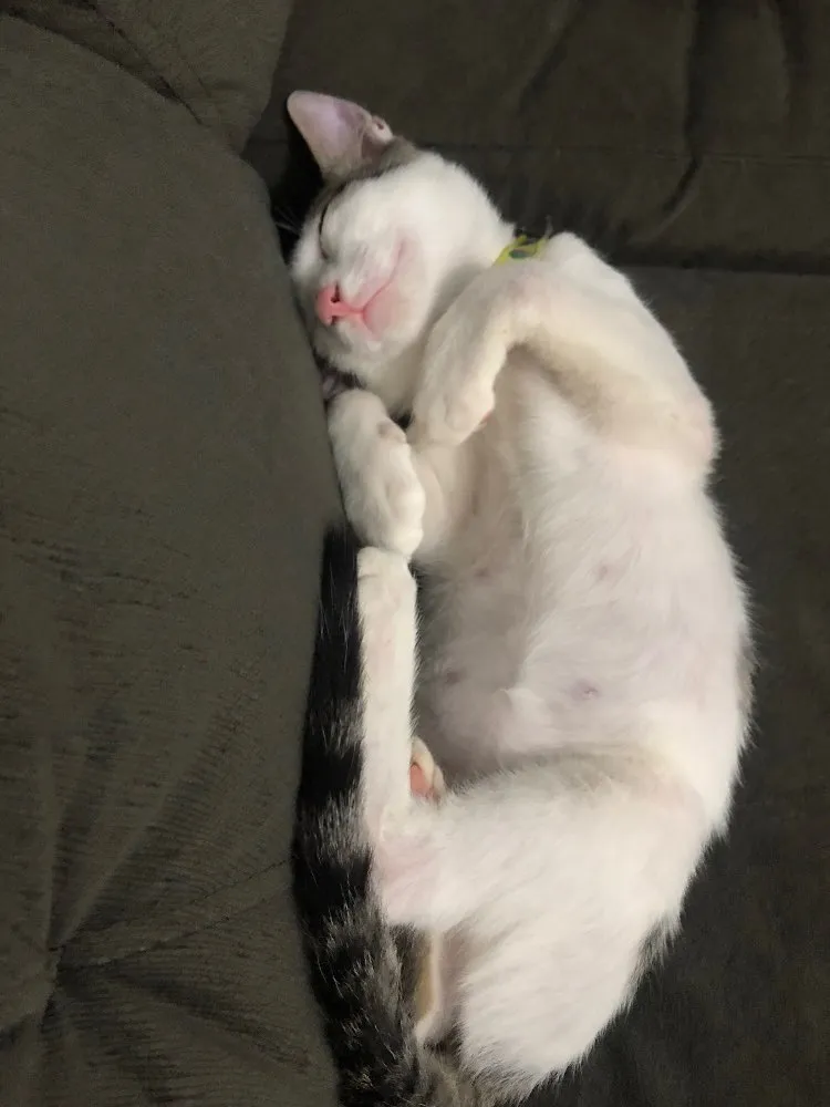 Tem entre 2/3 meses e hoje está totalmente recuperado!! É amoroso, brincalhão e um super companheiro!