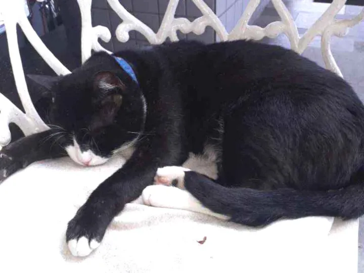 O gatinho chegou ao condomínio, sua casa são as áreas comuns do condomínio, ele é muito tranquilo e carinhoso, se dá bem com todas as pessoas. Castrado e ceguinho de um olho.