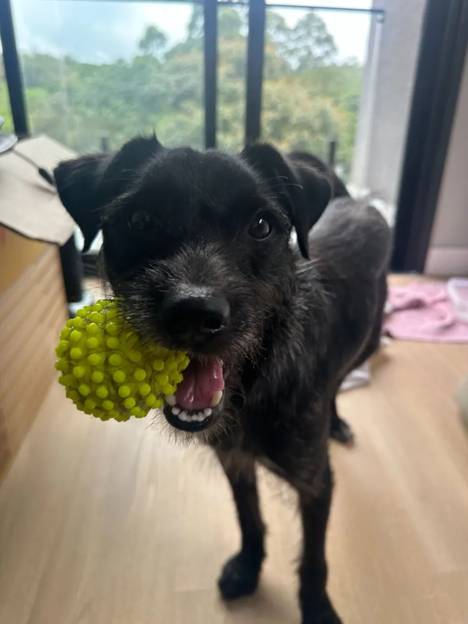 Amora foi achada no dia 3/2 às 8 PM em uma noite chuvosa em Barueri. Ela estava sozinha em um estacionamento aberto, seguindo famílias até seus carros e pedindo ajuda. Ela estava bem perdida e com medo. Ela está saudável, é super doce e brincalhona. Ela faz xixi no tapetinho e anda bem na coleira. Ela se dá bem com animais, e precisa de você. Deve ter no máximo 1 ano de idade.Amora é um nome provisório.