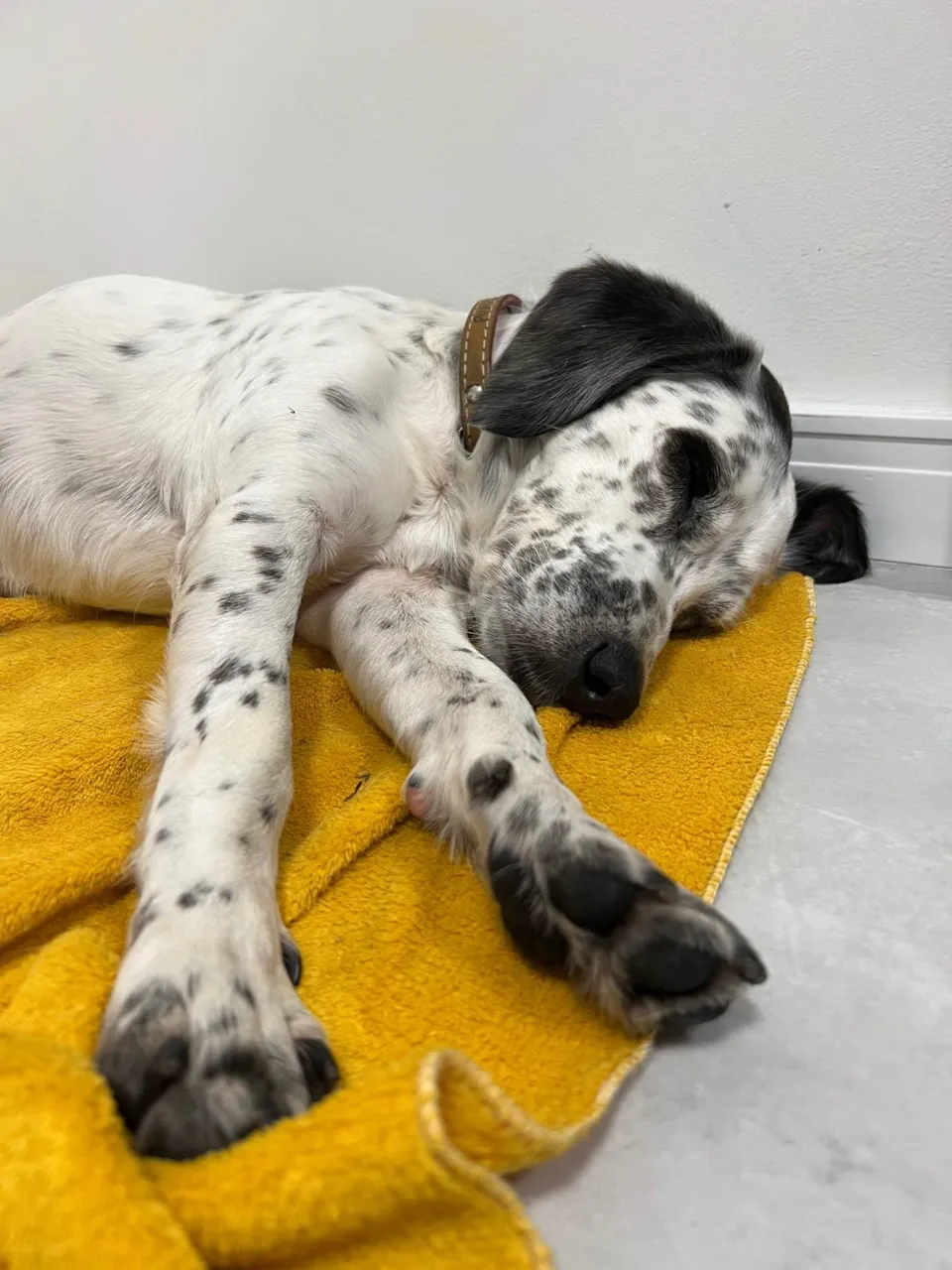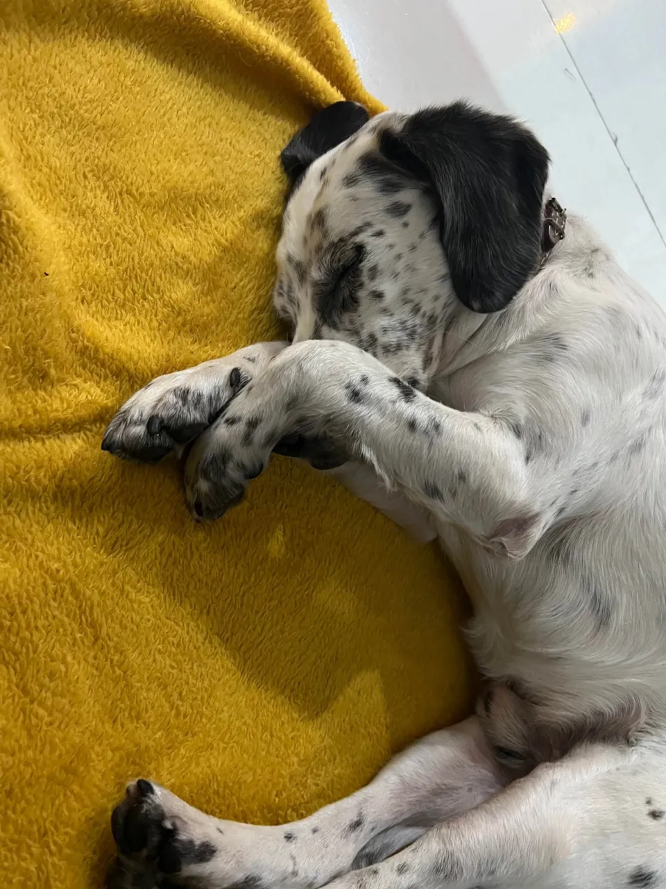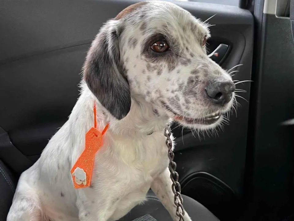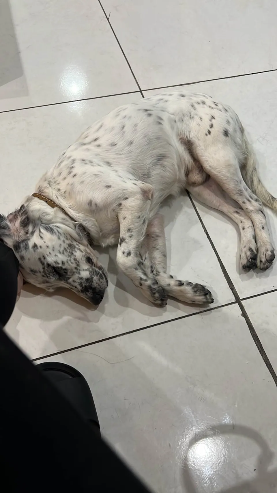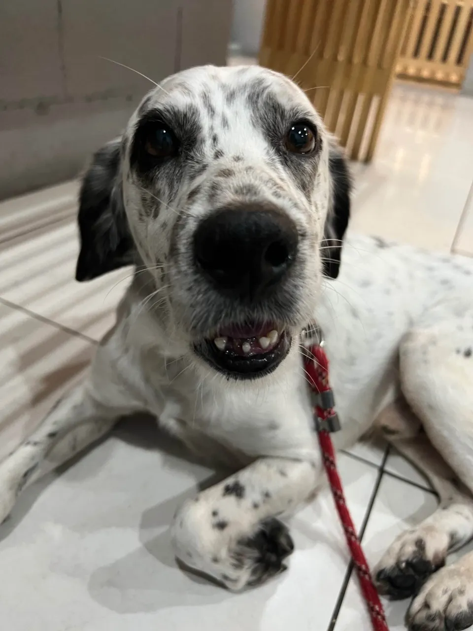 Ele é muito dócil, o cachorro mais bonzinho que já vi na minha vida! É um macho, acredito que tenha entre 2, 3 anos… Mistura de dálmata