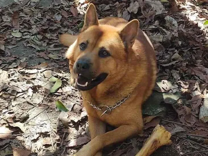 A raça dele é Akita Inu, um cachorro muito amoroso.