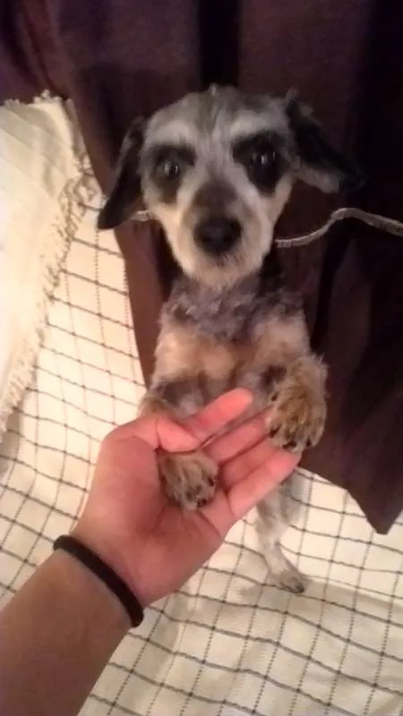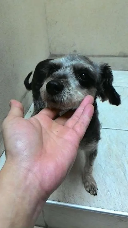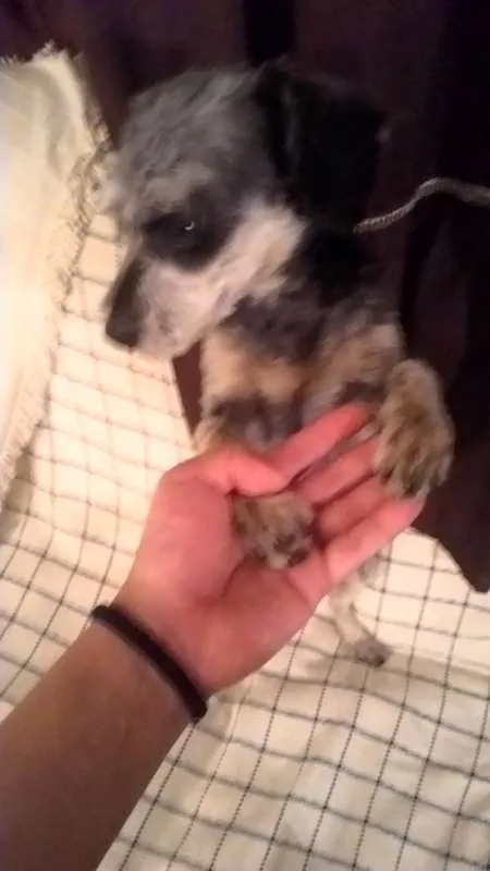 Encontrada semana passada com uma coleira com uma "patinha" de enfeite.