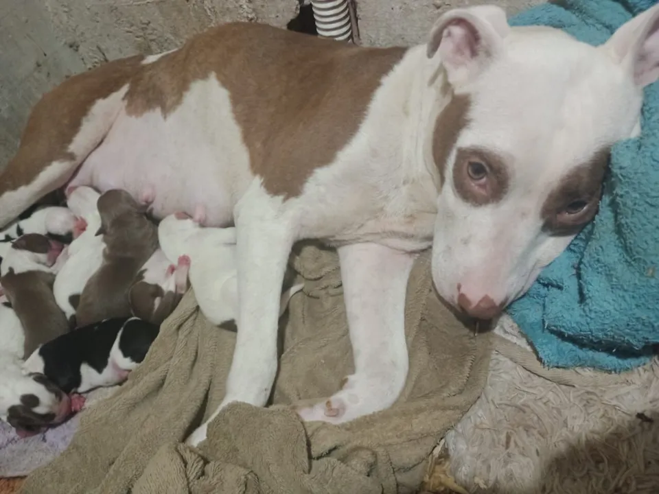 Olá, amigos! Estou buscando ajuda para encontrar um lar amoroso para 9 adoráveis filhotinhos de pit bull com pelagem rajada. Eles nasceram no dia 12/01/2026 e têm menos de 2 meses de idade. Esses pequenos são extremamente dóceis e sociáveis, tanto com crianças quanto com outros cães. Eles têm o porte pequeno e se adaptam muito bem a casas com quintal, onde podem brincar e se divertir.