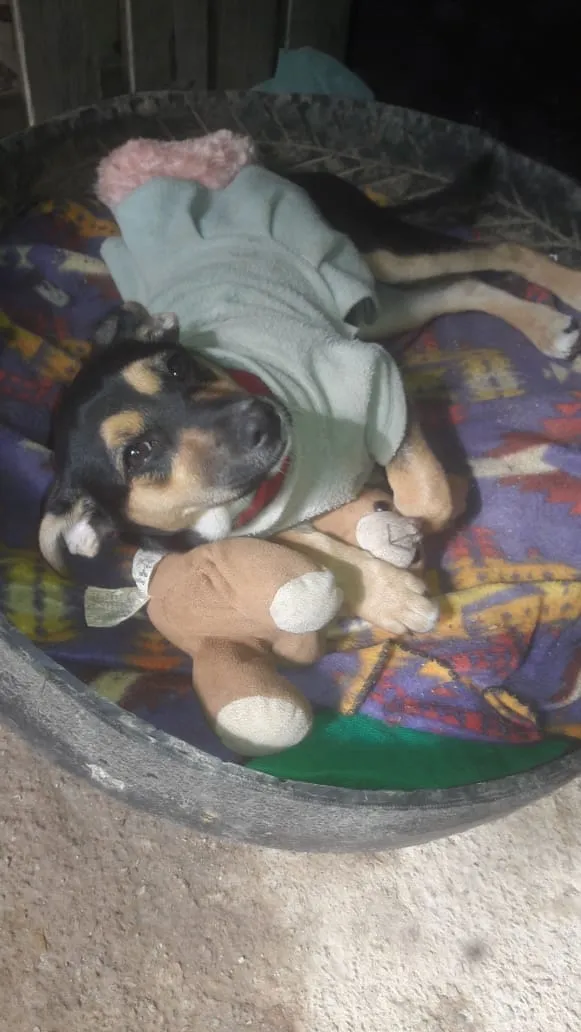 Linda cachorrinha para adoção, porte médio para pequeno, com 3 meses e meio, vacinada.