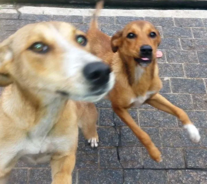 Olá amigos, nesta manhã de sábado: 28/11/15 encontrei dois cães na rua, muito magrinhos, mas aparentam estar saudáveis. Fiquei preocupada por conta deles estarem em um avenida movimentada, resolvi tirá-los de lá e deixar eles na minha vila (não os coloquei para dentro porque tenho 2 cachorros, e eles poderiam brigar entre si). Estou preocupada, gostaria muito que alguém pudesse cuidar deles. Já dei água e comida, fico com o coração partido de não poder ceder abrigo para eles (não há espaço, e os meus podem estranhá-los). Uma fêmea e um macho, estão unidos, parecem irmãos pelo afeto e por não se deixarem... Que por favor a pessoa aceite os dois, pois não há como pegar apenas um e deixar o outro na rua. A fêmea está mais magrinha, e o macho não tanto quanto ela. Estão na região do ABC paulista, Santo André - SP.
