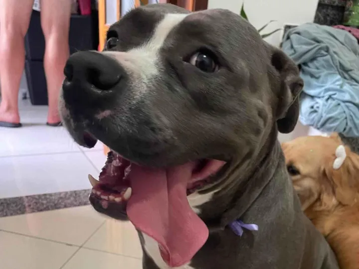 Margoth é uma linda Pit-Bull fêmea de pelagem cinza, com 2 anos de idade e porte médio. Ela está vacinada, vermifugada e pronta para encontrar sua nova família. Margoth tem um temperamento incrivelmente dócil, brincalhão e sociável. Ela adora brincar com outros cachorros e é extremamente amigável com crianças e desconhecidos. Margoth pode se adaptar bem tanto em uma casa com quintal quanto em um apartamento, desde que tenha espaço para se movimentar e gastar energia. Ela é uma companheira leal e carinhosa que está esperando ansiosamente para trazer alegria e amor para sua nova casa. Venha conhecer essa fofura e se apaixonar por sua personalidade encantadora!
