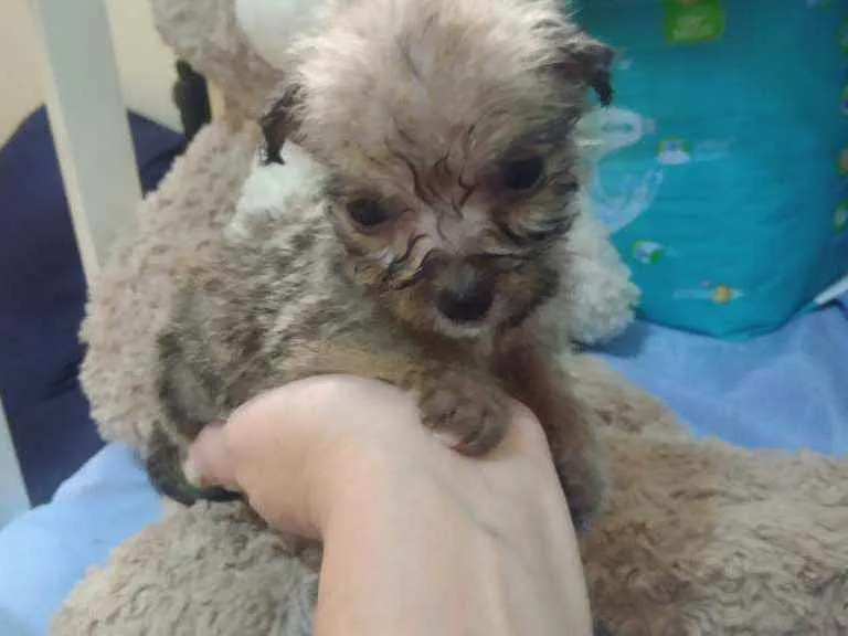 Linda cachorrinha PROVÁVEL porte pequeno, provável mestiça de shitzu ou Lhasa. ( NÃO TENHO COMO GARANTIR PORTE, POIS FOI ENCONTRADA ABANDONADA NA RUA COM SEUS IRMÃOS E SEM OS PAIS)