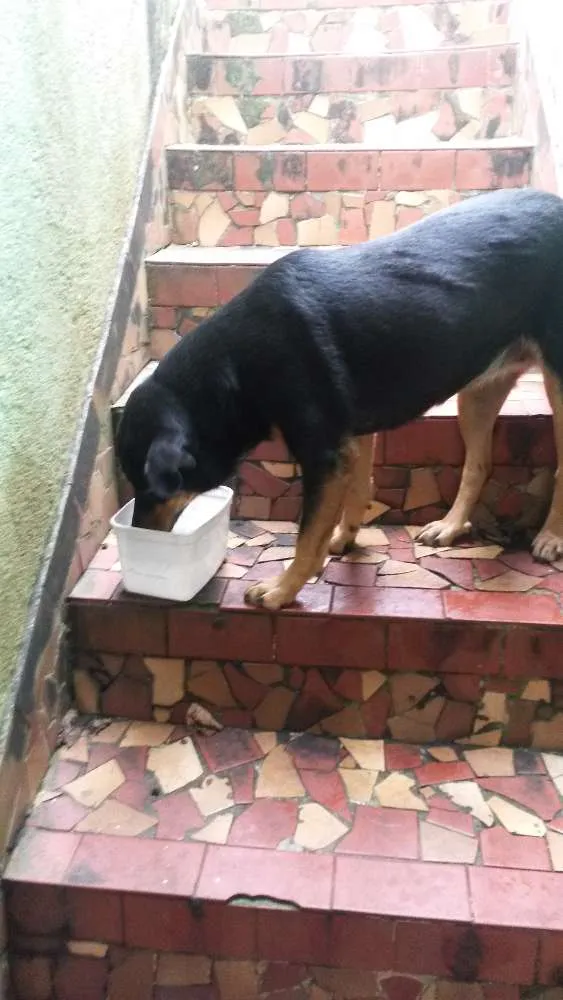 Sou a preta e sou muito boazinha! Fui resgatada das ruas. Mudamos para um apartamento pequeno e não são permitidos cães do meu tamanho. Tenho muita energia pra gastar! Então se tiver um quintal grande ou até mesmo um sítio eu vou amar!!