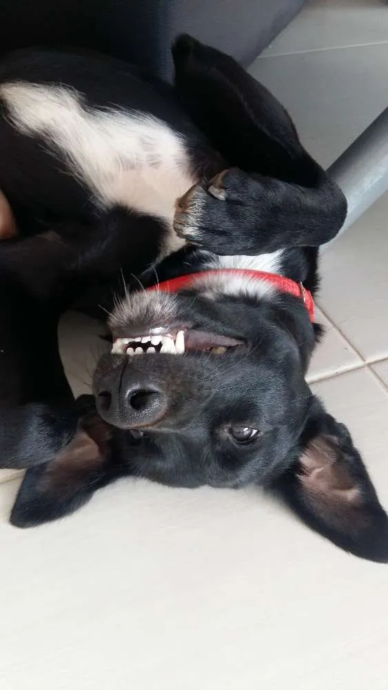 Esse cachorrinho foi abandonado próximo à Padaria Delícia, no fim de dezembro. Estava muito assustado e carente :( Levamos ele para casa, demos banho, vacinamos, vermifugamos e castramos ele. Durante sua estadia conosco se mostrou muito dócil, paciente com crianças e cachorros e muito energético: adora brincar! Procuramos uma família que dê muito amor e carinho para ele! Ele tem em torno de 1 e 2 anos, conforme a veterinária.