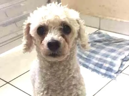Este amoroso cãozinho Poodle (branco) foi encontrado na Avenida dos Estados em Santo André, na altura do bairro de utinga.