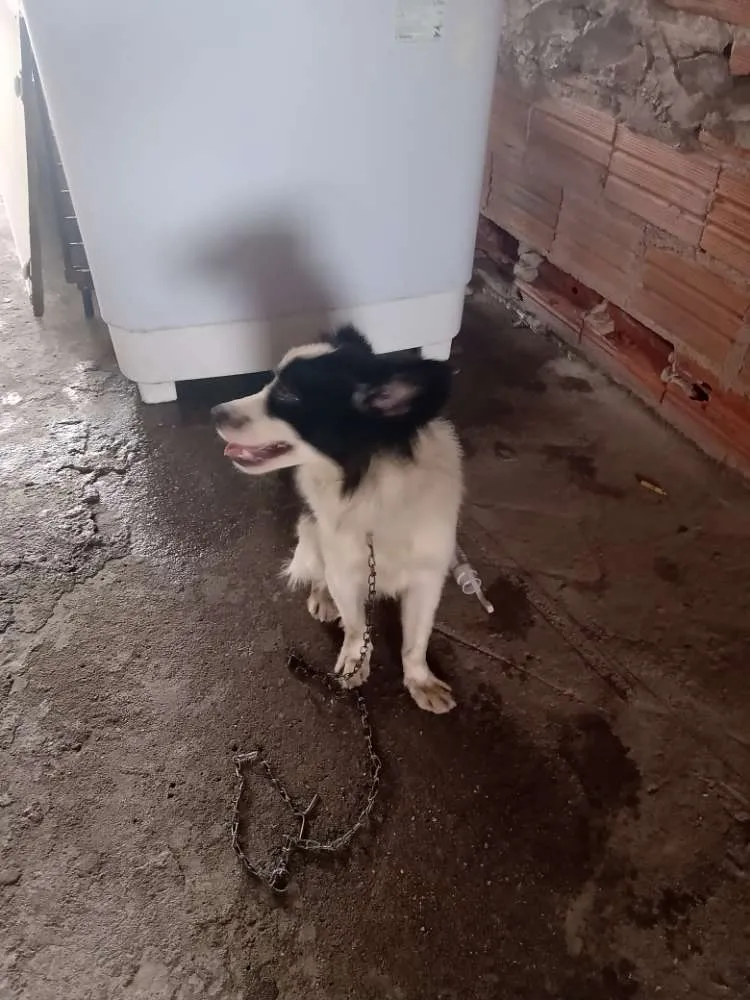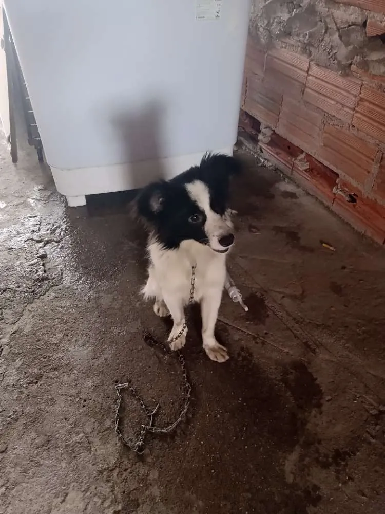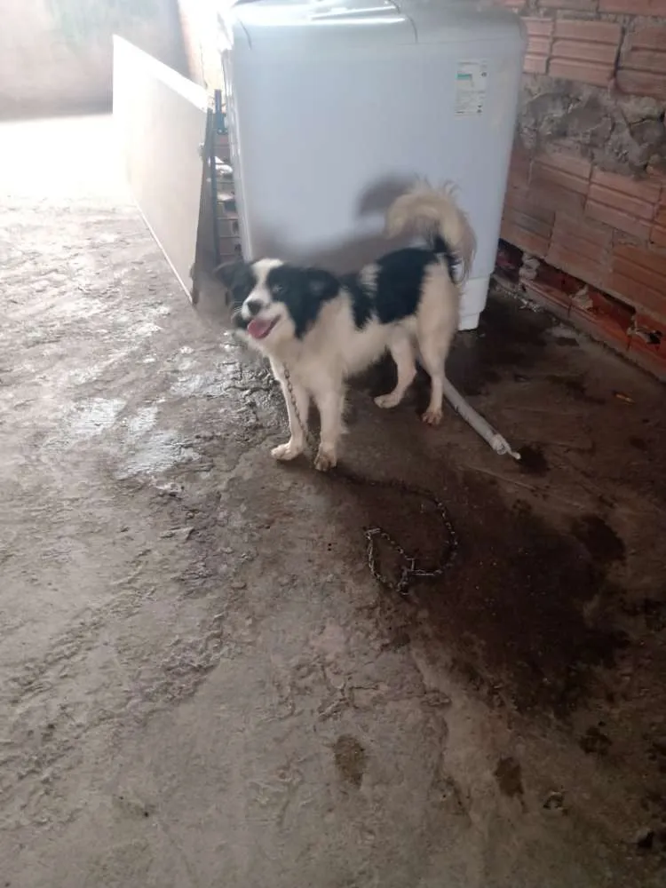 Gente resgatei esse cachorrinho, ele estava na avenida lá do Eldorado, ele está bem assustado e é super docil. Aparentemente parece que está perdido ou alguém abandonou, porque ele está de coleira, trouxe pra minha casa e estou procurando o dono ou um adotante. Preciso também de um LT pois não posso ficar com ele.