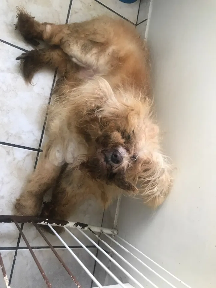 Por enquanto ele está sem tosa, pelas dificuldades que temos de levar ele até o veterinário, mas me proponho a entregar ele tosado, de banho tomado e com as vacinas em dia.