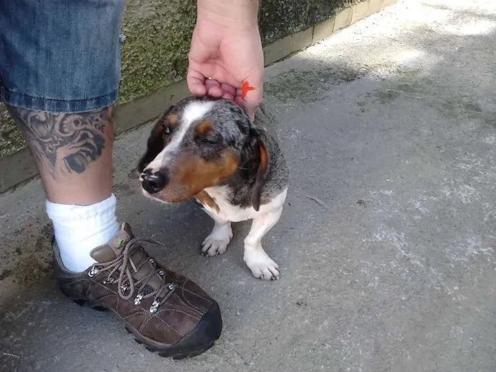 Encontrei o Tonton na frente da minha casa. Ele estava cansando e com muita sede. Por ser um cachorro de raça, acreditei que o mesmo tivesse se perdido do dono. Abriguei, dei comida, agua e espalhei cartaz por vários bairros, anunciei na internet e depois de 3 meses percebi que o dono jamais o procuraria. O tonton é quase idoso, é meio surdo, por isso não late muito (o barulho precisa ser muito alto para despertar o interesse dele). Faz um ano que ele está comigo e, infelizmente não tenho dinheiro para cuidar dele como ele merece. Tenho mais dois cachorros e dois gatos (todos adotados) e o Tonton precisa de atenção especial. Ele adora crianças (ele não me deixa brigar com meus filhos) e é super tranquilo. Tudo o que ele precisa é de alguém que cuide para que sua velhice seja bem tranquila. Se alguém puder e tiver interesse eu estou pedindo por favor que me ajude. Estou passando por uma situação muito dificil e não tenho como ficar com ele e prover o que ele precisa. Me ajudem a dar um lar para ele?