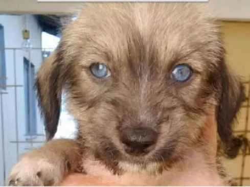 Tem 45 dias. Porte de pequeno à médio. Se dá super bem com outros animais.