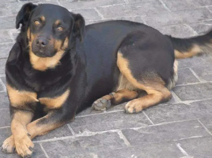 Atende por Grace, é fêmea, tem 10 anos, castrada (dá para sentir os pontos), apesar da pelagem preta e bege, é vira-lata. Geralmente ela não é muito ativa, é bem dócil e esta gordinha.