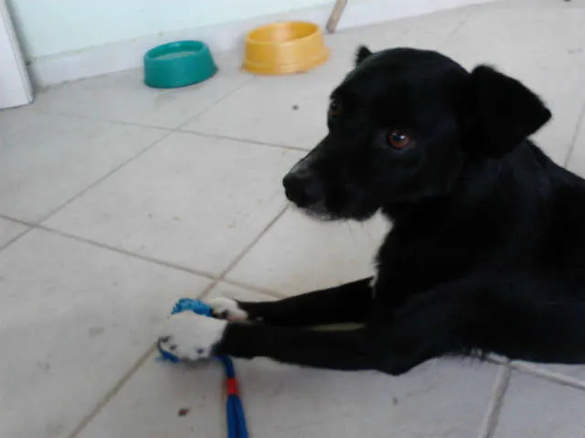 OLHOS CASTANHOS, PELO RASTEIRO E BRILHANTE, PEITO E PATINHAS BRANCAS, RABO PITOCO (CORTADO QUANDO NASCEU). ELE É MANSO CONTATO PELOS FONES: 9 68945324 OU 9 59899410