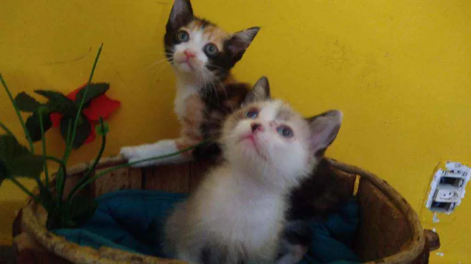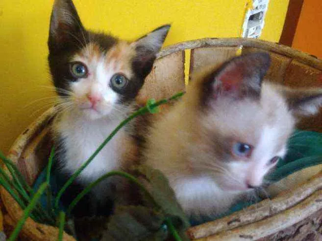 Adoção conjunta - tricolor fêmea, clarinho macho, são irmãos inseparáveis.