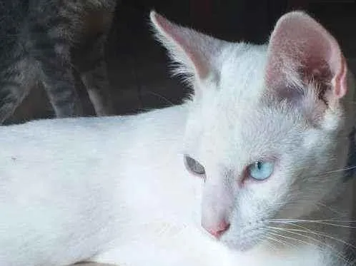Floquinho carinhoso e tem um olho verde outro azul