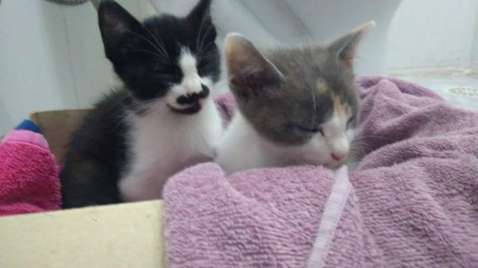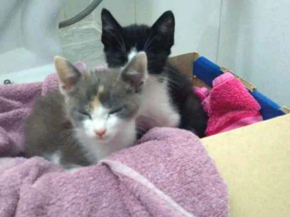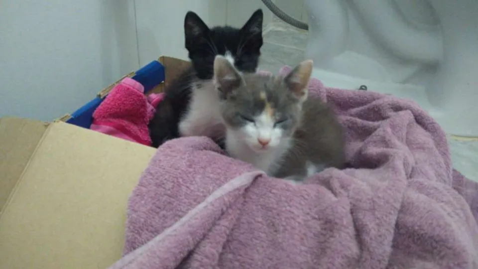 Dois filhotinhos foram deixados no portão de casa.