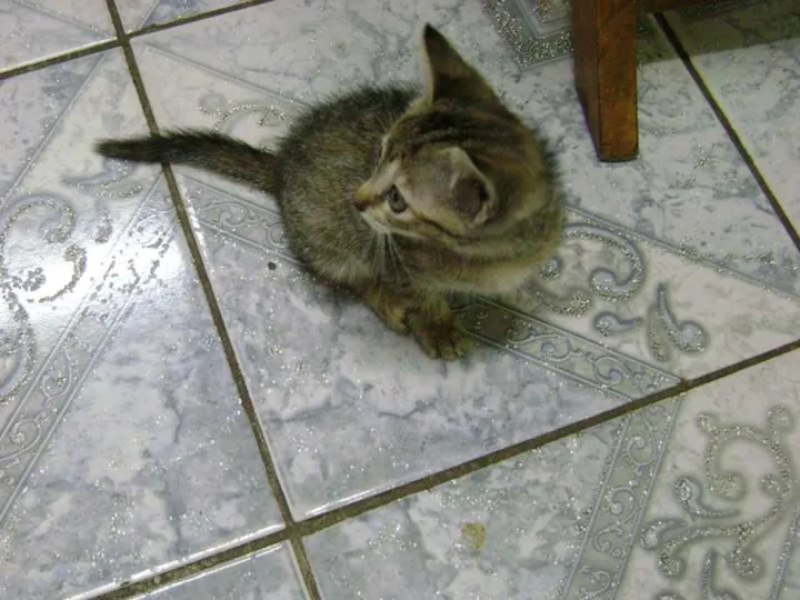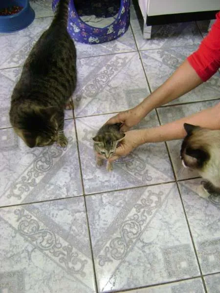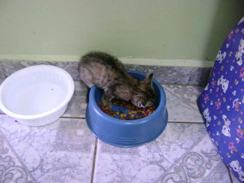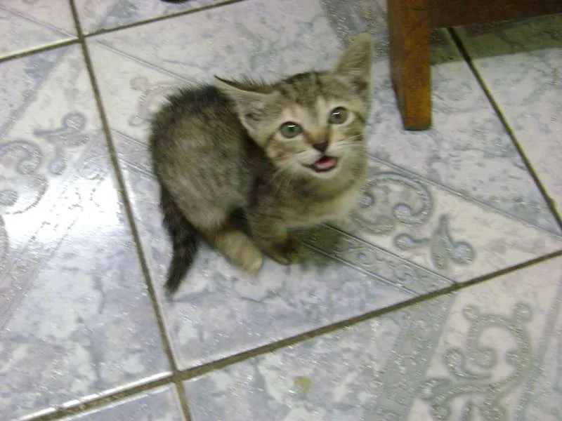 Esse lindo gatinho precisa de um lar. Foi abandonado em uma caixa numa viela à noite no frio. Tem aproximadamente 6 semanas apenas. Estava magrinho e assustado. Agora já está saudável e bem brincalhão.