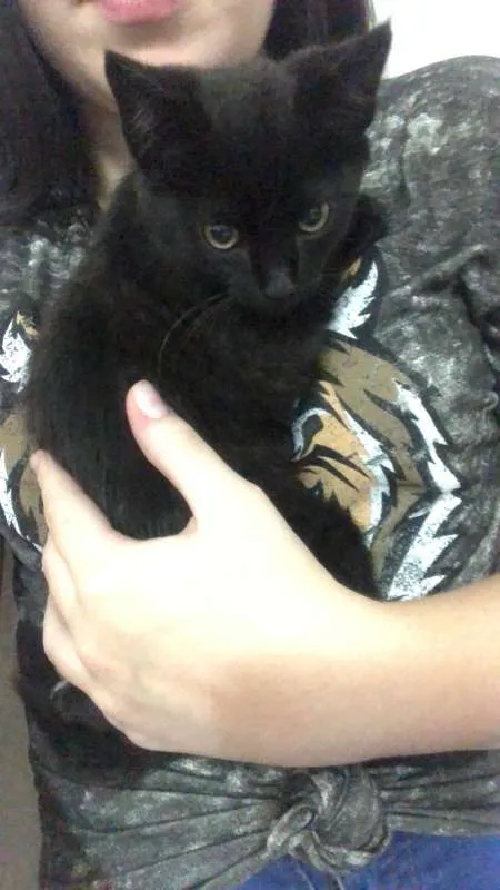 Encontrei uma bolinha de pelo preta na garagem do meu prédio, mas quando eu fui pegar, o danadinho se escondeu dentro do meu carro, mas deixando o rabinho de fora. rsrs Fiz de tudo para tirar ele de lá, liguei o carro, buzinei, bati em todo o para-choque e ele só saiu quando eu fiquei indo para frente e para traz com o carro. Quando eu contei no grupo do prédio que tinha um gatinho lá sumido, porque ele correu muito e se escondeu, alguns moradores se mobilizaram e fomos em busca do lugar que ele se escondeu. Olha o gatinho se camuflou muito bem. Cada um ajudou e está ajudando no que pode. Demos banho e cuidamos dos dedinhos da patinha traseira que estavam machucados (uma unha foi perdida), ele já foi ao veterinário, está seguro na casa de uma das moradoras do meu prédio com a barriguinha cheia e livre da maldade humana. Ele é dengoso, amoroso e garanto que irá te trazer muita alegria, amor e felicidade para a sua vida. Que tal encher a sua vida de lambejos? Eu levo até a casa do adotante!