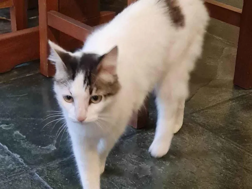 Ela é calma, mia pouco e parece ser caseira, acostumada a conviver com pessoas. Se aproxima, se esfrega e até sobe no colo sem chamar. Está acostumada a comer ração. Por estar assustada não foi possível ver se está castrada ou não.