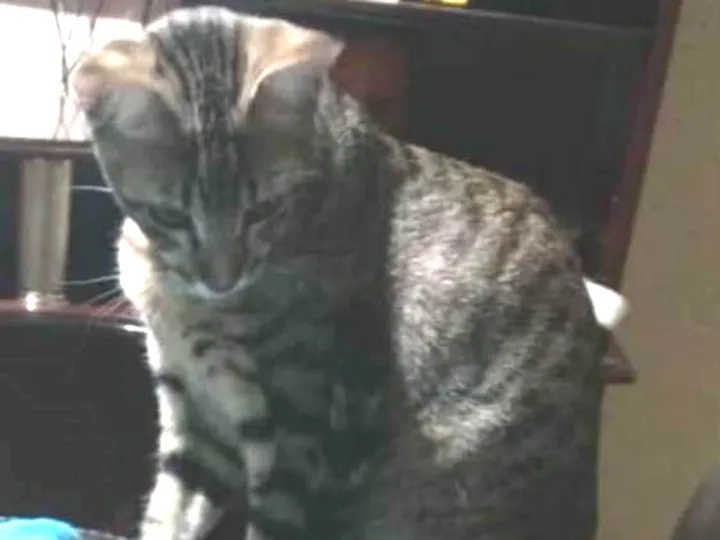 Gatinho cinza com 6 meses. É dócil e deve estar assustado. Fugiu no dia 25/07