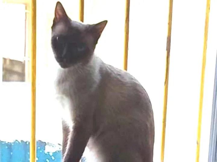 Marrom,cara preta,olhos azuis. Saiu a noite,do n.97 rua Bartolomeu Dias,vila João Ramalho,Santo André e não voltou mais.