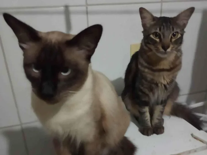 Gato manso,caseiro,saiu de madrugada da residência ,rua Bartolomeu Dias no dia 5/11,não voltou mais.Pelagem preta ,branca,e marrom,com listras.