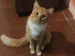 É um gatinho muito fofo todo amarelinho com detalhe branco no pescoço e patinha. Medroso e comilão.