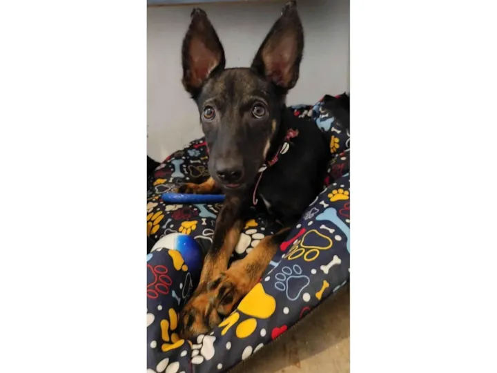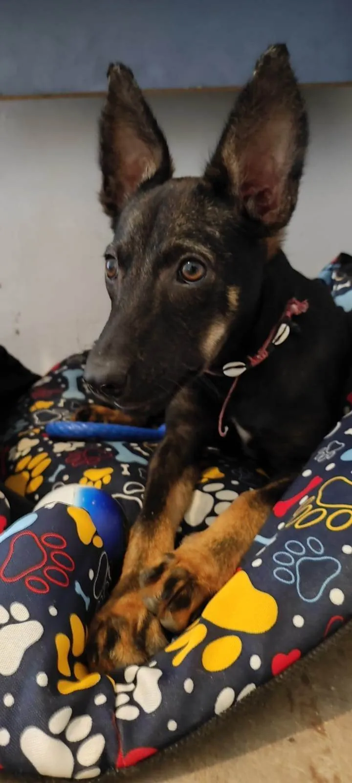 Ela foi resgatada e tem entre 5 e 6 meses. Está saudável, é super brincalhona, dócil e companheira!