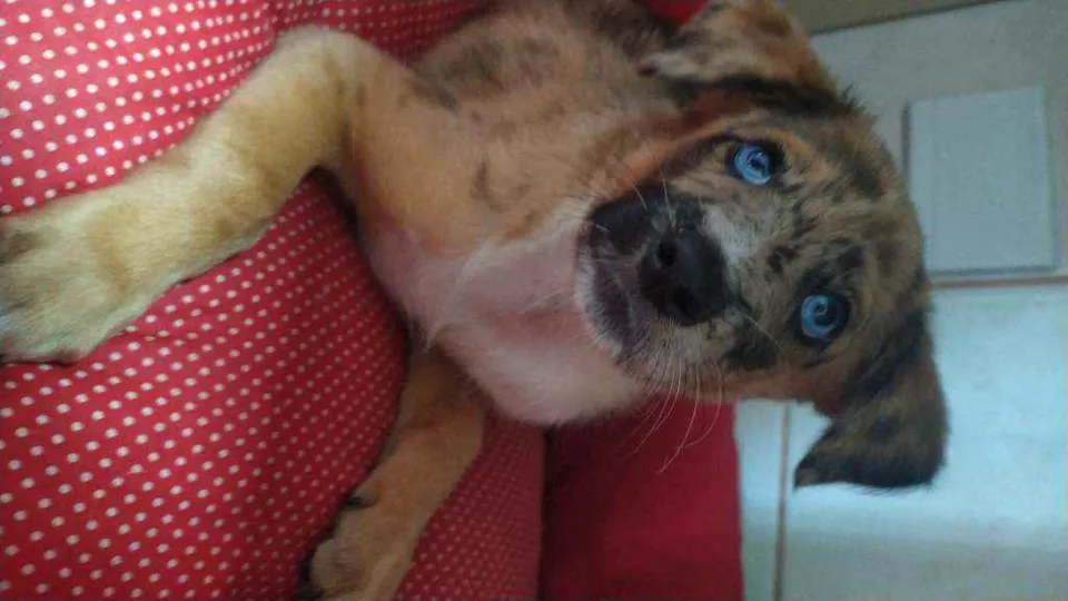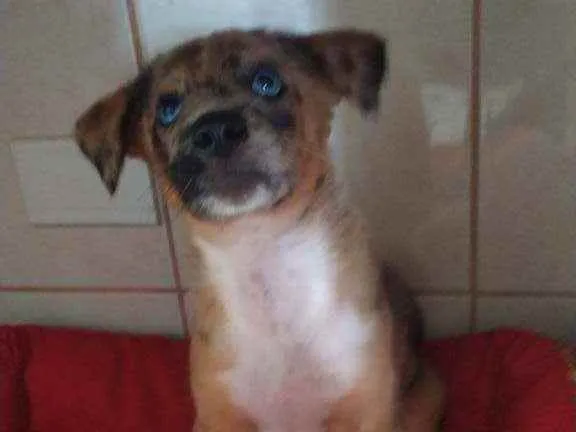 Cachorrinho muito fofo e lindo, com olhos azuis.