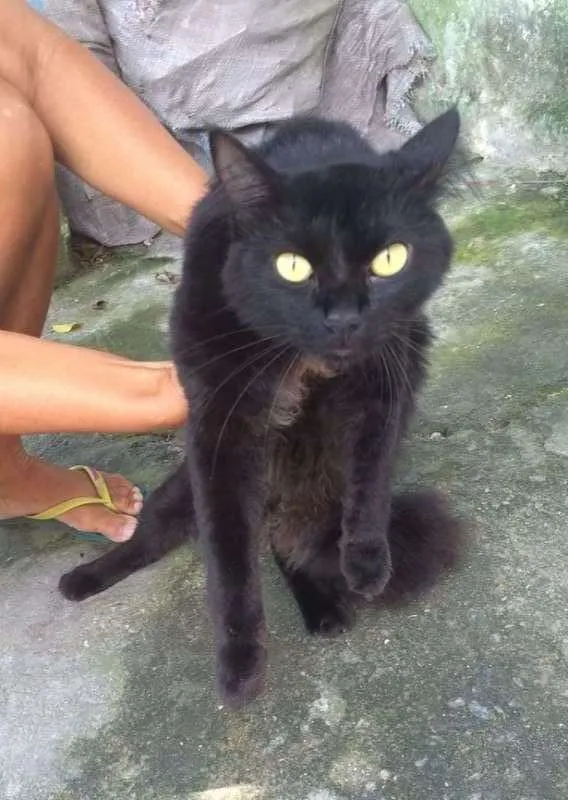 Bonzinho e um pouco medroso. Castrado e vacinado. Está em local aberto junto de uma frajolinha carinhosa. Doado para apartamento todo telado em Santos.